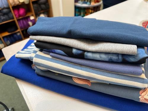 Bomuldsjersey, isoli, fastvævet viscose, hør, poplin, fastvævet bomuld, fleece, gauze og fløjl