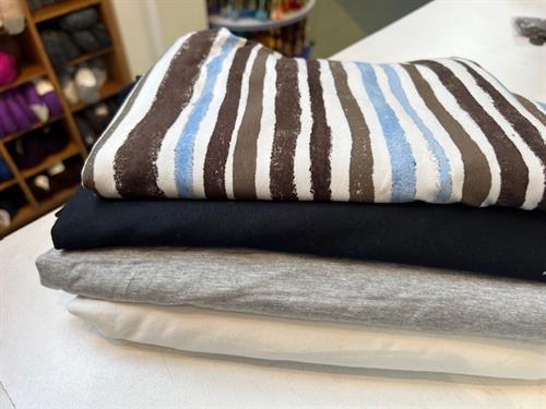 Bomuldsjersey, isoli, fastvævet viscose, hør, poplin, fastvævet bomuld, fleece, gauze og fløjl