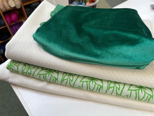 Bomuldsjersey, isoli, fastvævet viscose, hør, poplin, fastvævet bomuld, fleece, gauze og fløjl