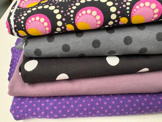 Bomuldsjersey, isoli, fastvævet viscose, hør, poplin, fastvævet bomuld, fleece, gauze og fløjl