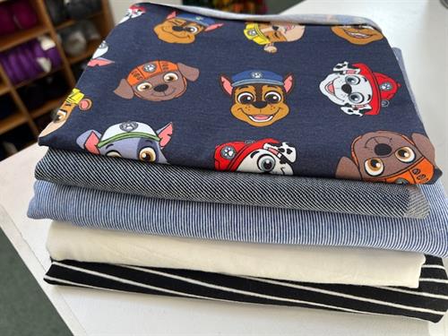 Bomuldsjersey, isoli, fastvævet viscose, hør, poplin, fastvævet bomuld, fleece, gauze og fløjl