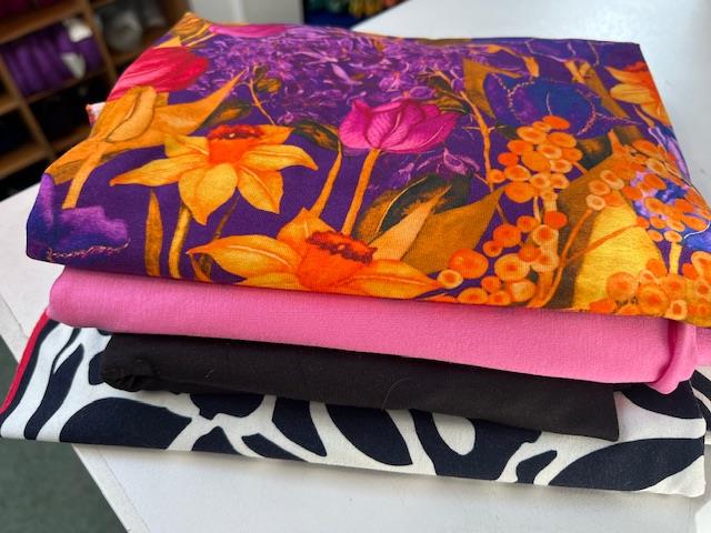 Bomuldsjersey, isoli, fastvævet viscose, hør, poplin, fastvævet bomuld, fleece, gauze og fløjl