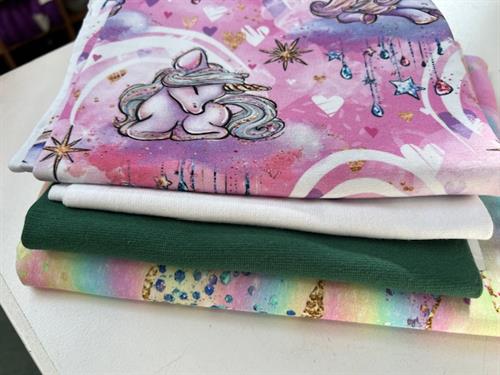 Bomuldsjersey, isoli, fastvævet viscose, hør, poplin, fastvævet bomuld, fleece, gauze og fløjl