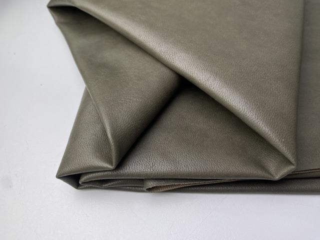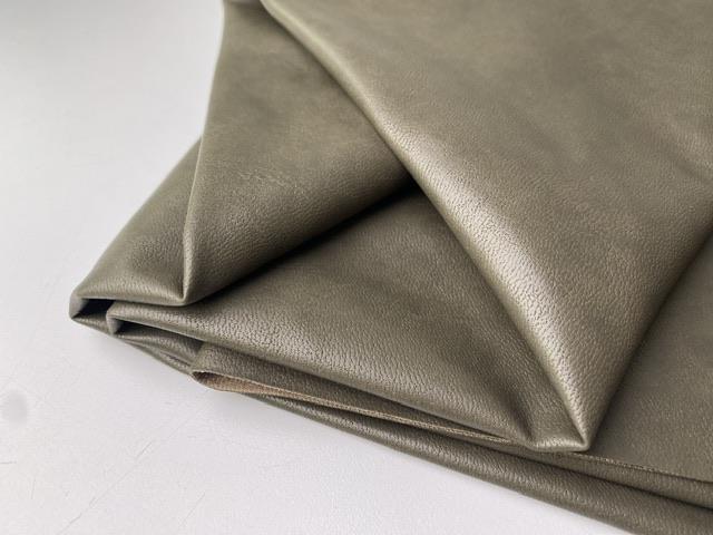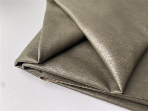 Smørblødt kunstskind i en mørk khaki grøn. Kvaliteten er både eksklusiv og behagelig at arbejde med, hvilket gør stoffet oplagt til beklædning som fx bukser og nederdele.