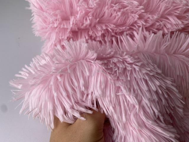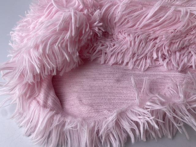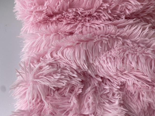 Super skøn langhåret fake fur / pels i baby lyserød. Den er dejlig blød og ville egne sig fint til beklædning... ja, det fælder:)