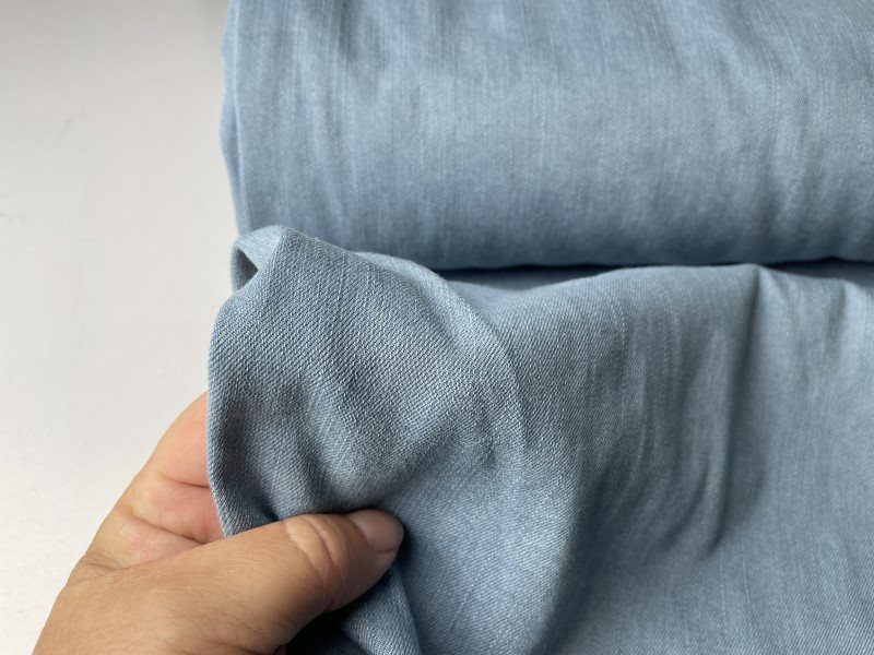 Denne denim tencel er super blød, elegant og har en smidig drapering med en let glans. Stoffet er åndbart og tørrer hurtigt. Forvask anbefales, før du bruger stoffet til DIY mode.