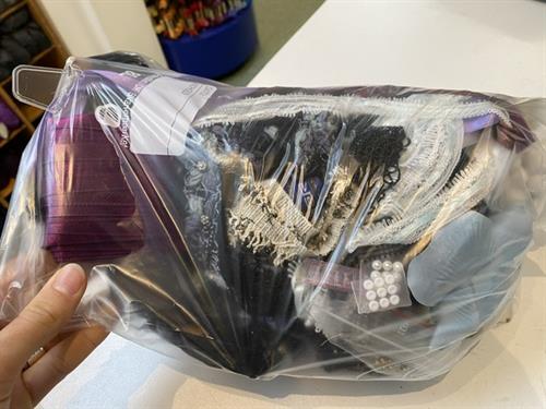 Vi har købt 1,5 tons deadstock sytilbehør. Vi ved næsten ikke hvor vi skal starte, men søde Lykke har lavet lykkepakker. De er fyldt med alverdens sytilbehør - det kan være bånd, knapper, besætninger... se billedet for at få en idé om indholdet. Der er kun en af hver. Køb en lykkepakke til en utrolig skarp pris. Der er fine ting iblandt, og så er det jo kun fantasien, der sætter grænser.