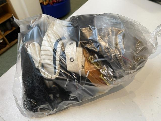 Vi har købt 1,5 tons deadstock sytilbehør. Vi ved næsten ikke hvor vi skal starte, men søde Lykke har lavet lykkepakker. De er fyldt med alverdens sytilbehør - det kan være bånd, knapper, besætninger... se billedet for at få en idé om indholdet. Der er kun en af hver. Køb en lykkepakke til en utrolig skarp pris. Der er fine ting iblandt, og så er det jo kun fantasien, der sætter grænser.