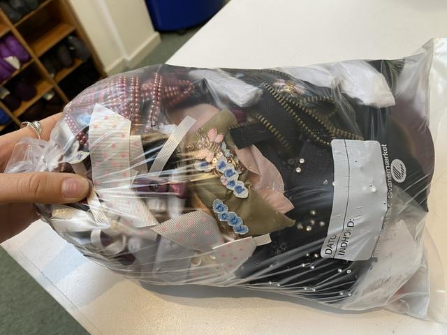 Vi har købt 1,5 tons deadstock sytilbehør. Vi ved næsten ikke hvor vi skal starte, men søde Lykke har lavet lykkepakker. De er fyldt med alverdens sytilbehør - det kan være bånd, knapper, besætninger... se billedet for at få en idé om indholdet. Der er kun en af hver. Køb en lykkepakke til en utrolig skarp pris. Der er fine ting iblandt, og så er det jo kun fantasien, der sætter grænser.