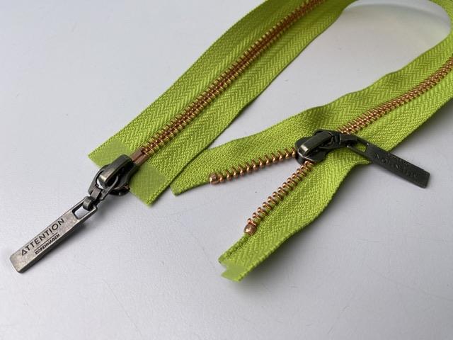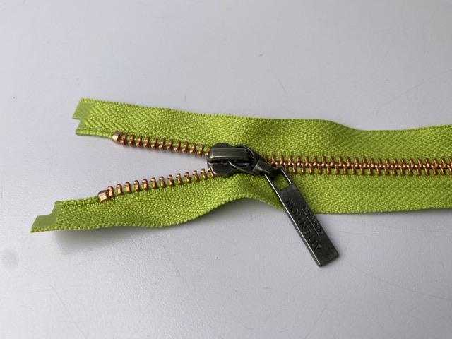 Lynlås - 2-vejs, æblegrøn med rose gold metaltænder, 34 cm