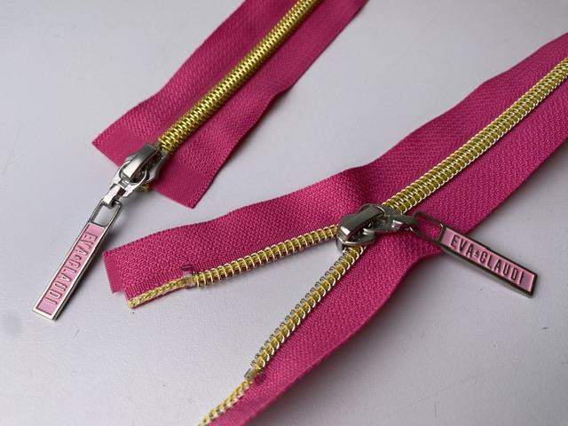 Lynlås - 2-vejs, barbie pink med guld plasttænder, 62 cm