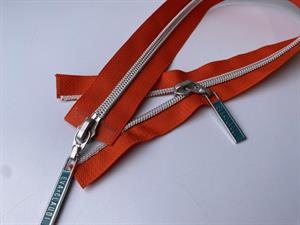 Lynlås - 2-vejs, cayennepeber med sølv plasttænder, 42 cm