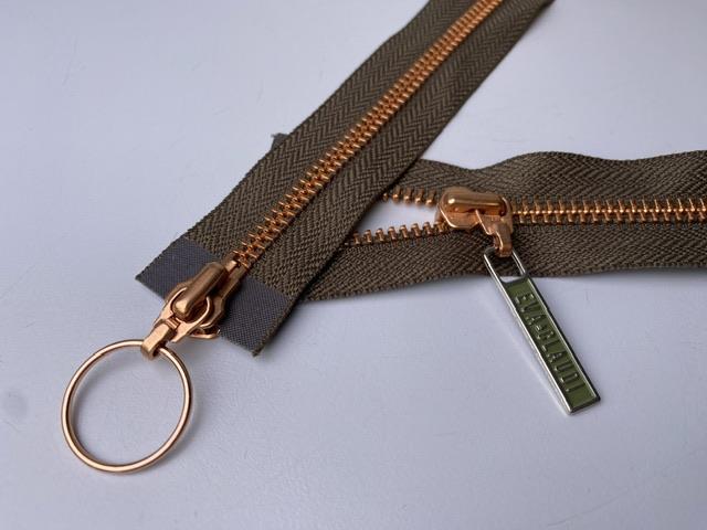 Lynlås - 2-vejs, grågrøn med rose gold metaltænder, 42 cm