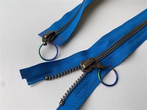 Lynlås - 2-vejs, havblå med metaltænder, 85 cm