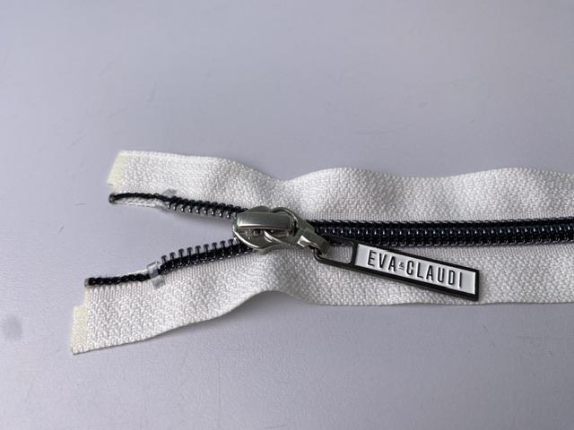 Lynlås - 2-vejs, hvid med sorte plasttænder, 32 cm