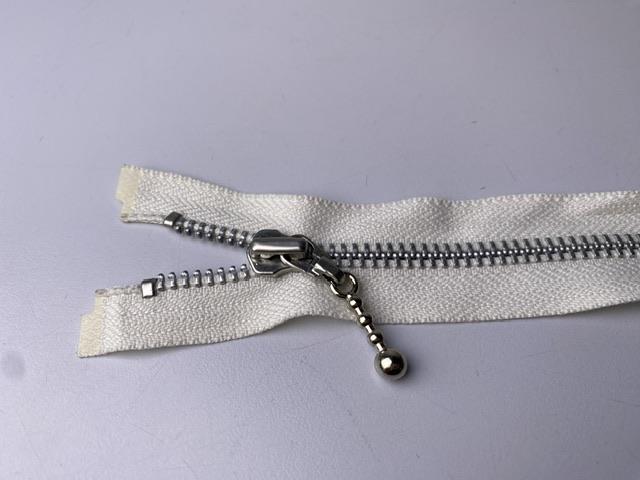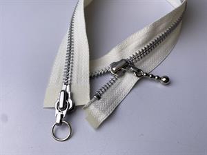 Lynlås - 2-vejs, hvid med sølv metaltænder, 43 cm