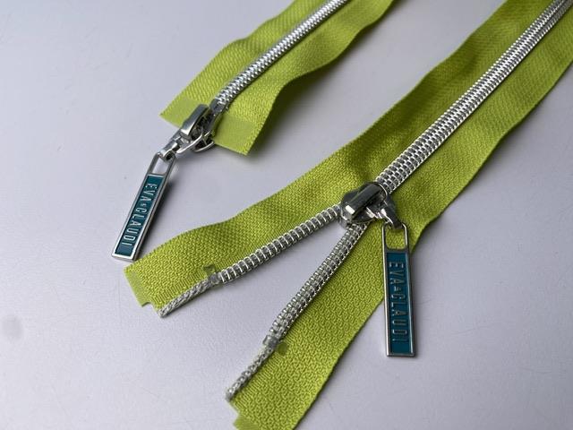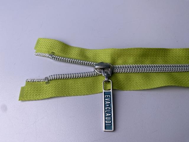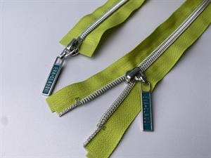 Lynlås - 2-vejs, limegrøn med sølv plasttænder, 62 cm