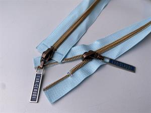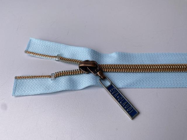 Lynlås - 2-vejs, lyseblå med rose gold plasttænder, 42 cm