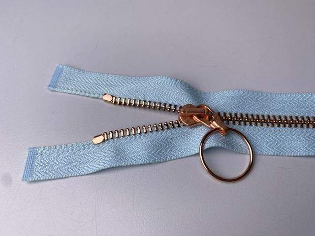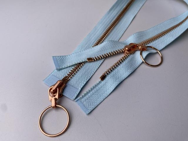 Lynlås - 2-vejs, lyseblå med rose gold metaltænder, 42 cm
