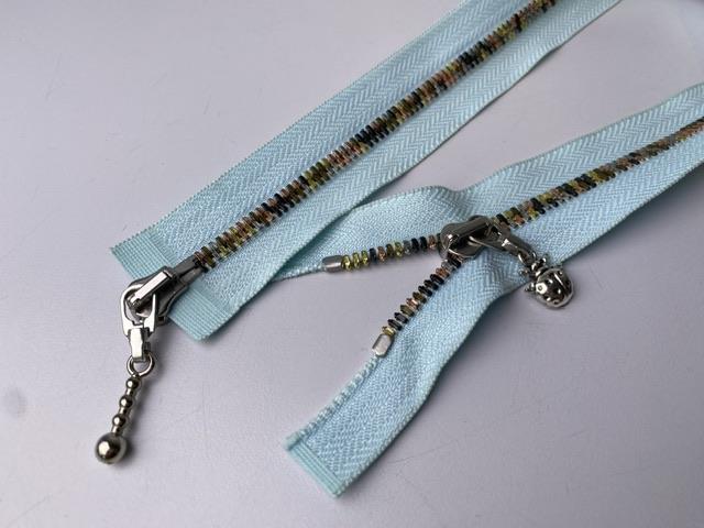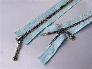 Lynlås - 2-vejs, lyseblå med farvede metaltænder, 42 cm