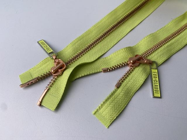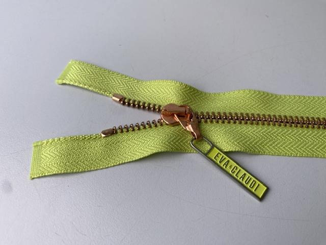 Lynlås - 2-vejs, lysegrøn med rose gold metaltænder, 42 cm