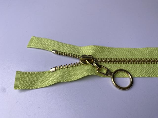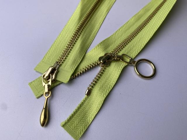Lynlås - 2-vejs, lysegrøn med guld metaltænder, 42 cm
