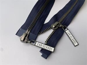 Lynlås - 2-vejs, marineblå med metaltænder, 34 cm