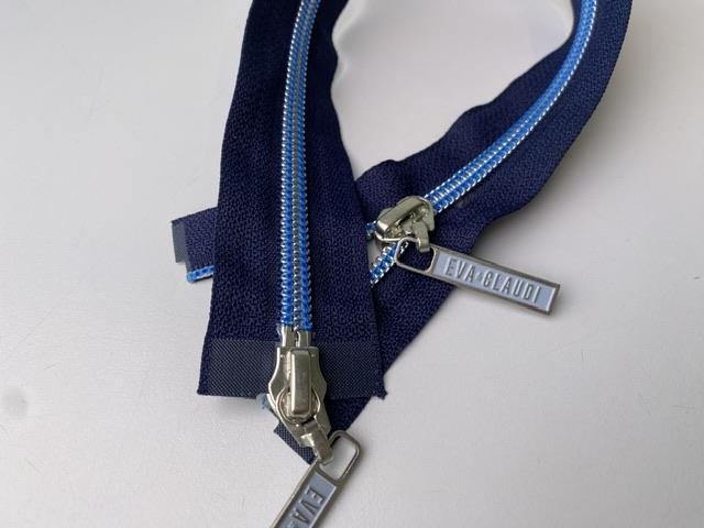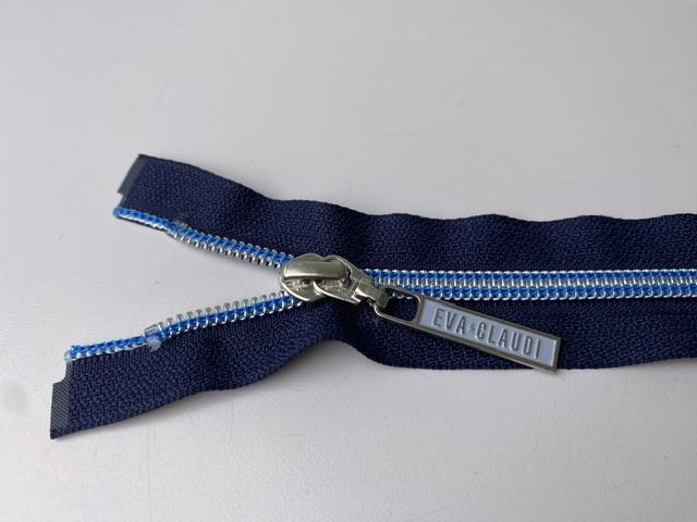 Lynlås - 2-vejs, marineblå med blå plasttænder, 35 cm