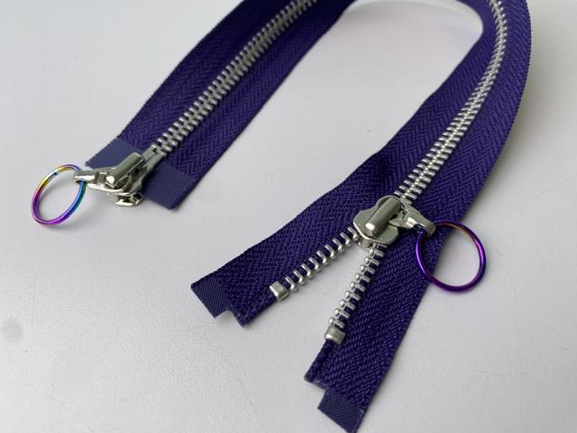 Lynlås - 2-vejs, mørkelilla med sølv metaltænder, 30 cm
