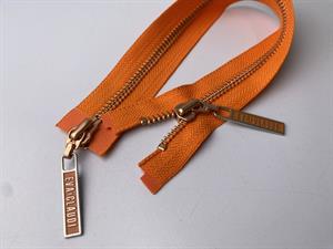 Lynlås - 2-vejs, orange med rose gold metaltænder, 34 cm