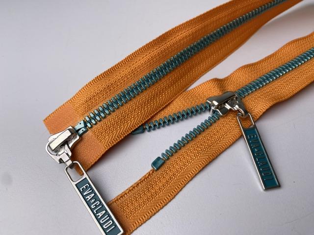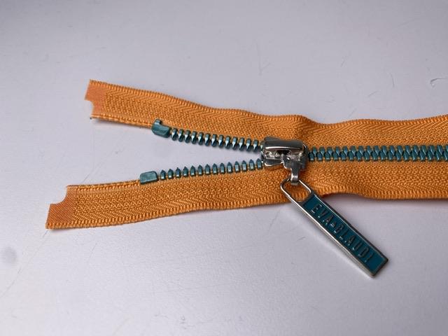 Lynlås - 2-vejs, orange med blå plasttænder, 40 cm