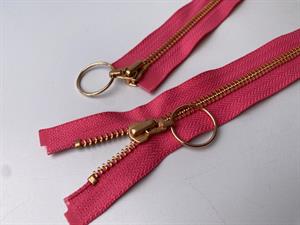 Lynlås - 2-vejs, pink med rose gold metaltænder, 65 cm