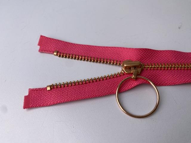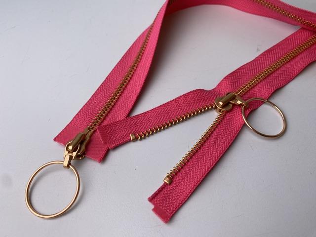 Lynlås - 2-vejs, pink med rose gold metaltænder, 70 cm