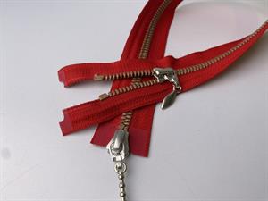 Lynlås - 2-vejs, rød med rose gold plasttænder, 40 cm