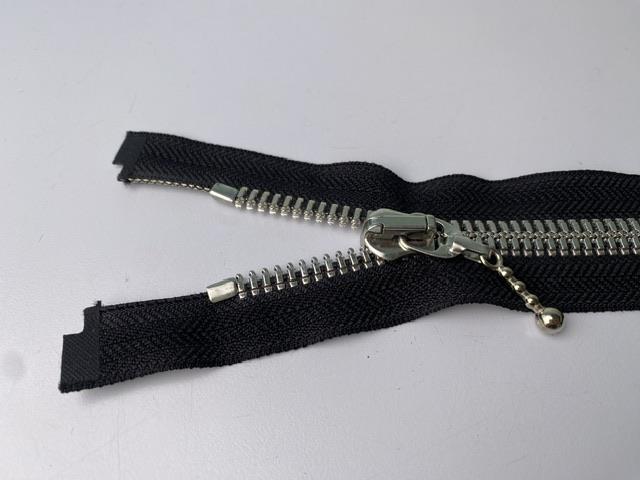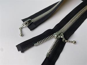 Lynlås - 2-vejs, sort med grove sølv tænder, 42 cm