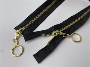 Lynlås - 2-vejs, sort med guld metaltænder, 42 cm
