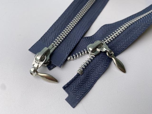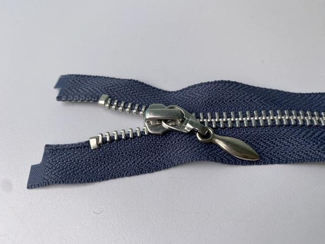 Lynlås - 2-vejs, stålblå med sølv metaltænder, 35 cm