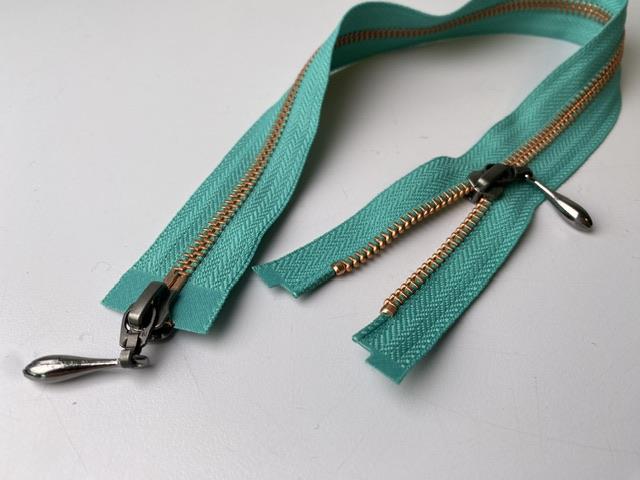 Lynlås - 2-vejs, turkisblå med rosegold metaltænder, 42 cm