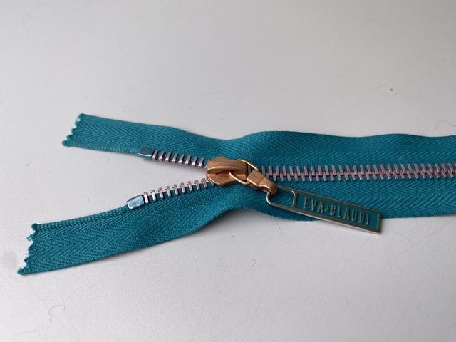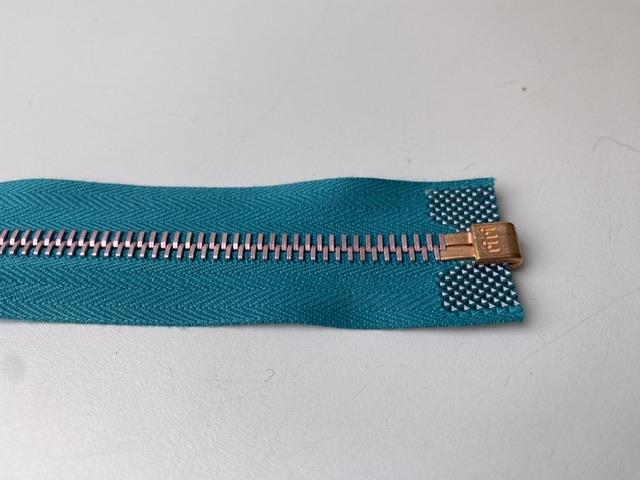 Lynlås - delbar, petroleumsblå med rose metaltænder, 22 cm