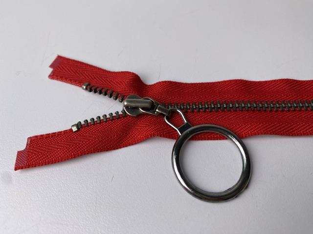Lynlås - delbar, rød med metaltænder, 45,5 cm