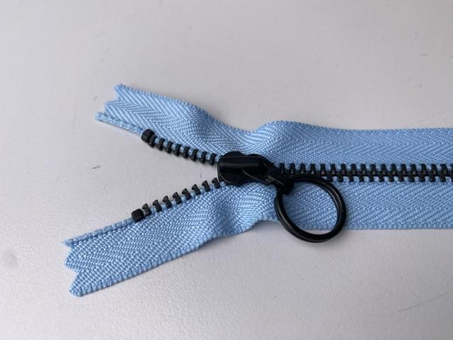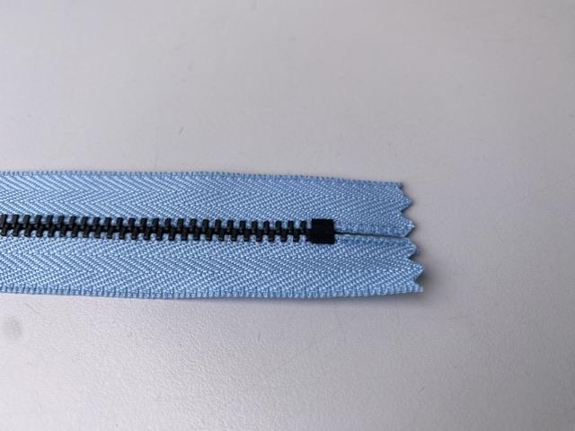 Lynlås - ikke delbar, lyseblå med metaltænder, 13 cm