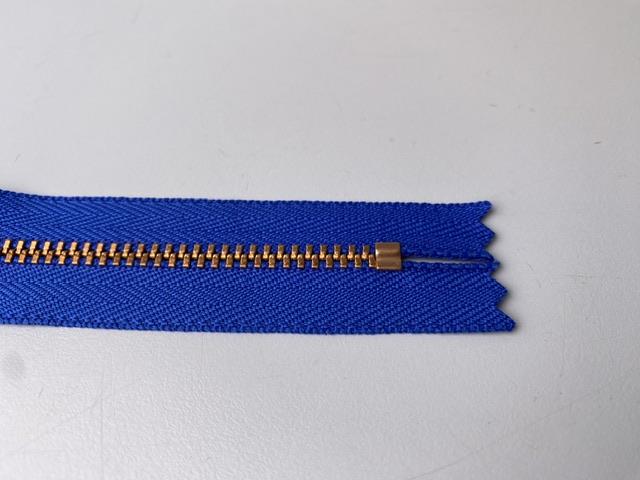 Lynlås - ikke delbar, intens blå med rose gold metaltænder, 13 cm