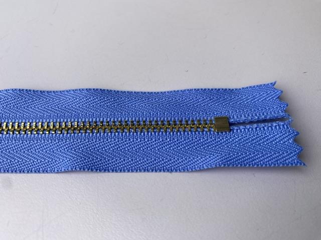 Lynlås - ikke delbar, lavendelblå med guld metaltænder, 15 cm
