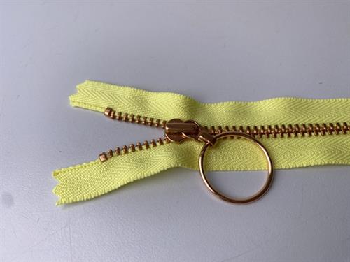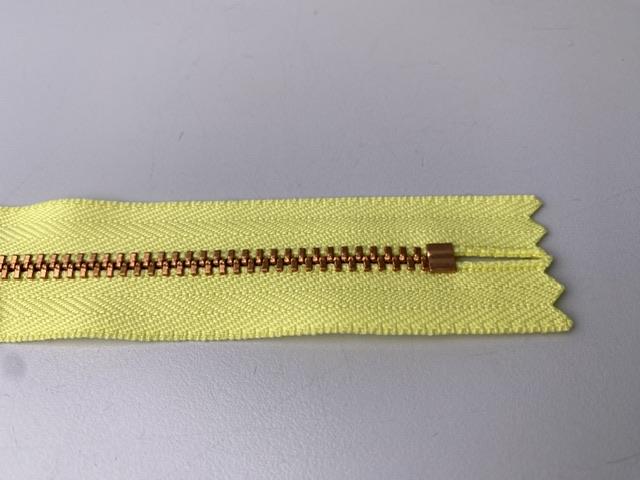 Lynlås - ikke delbar, gul med rose gold metaltænder, 13 cm