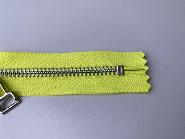 Lynlås - ikke delbar, neongul med sølv metaltænder, 13 cm