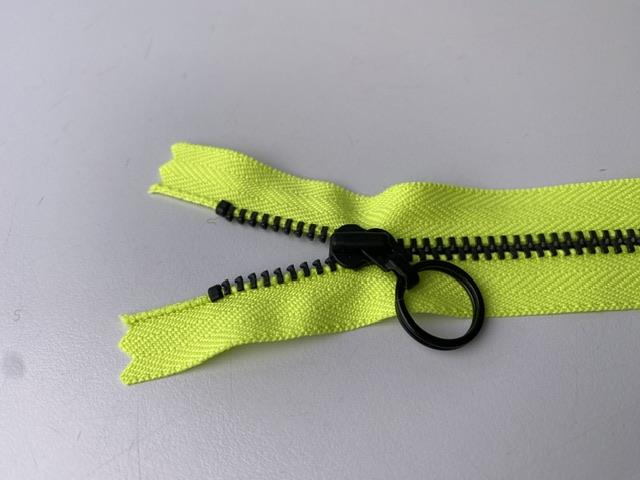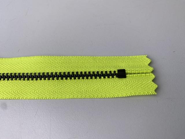 Lynlås - ikke delbar, neongul med metaltænder, 13 cm