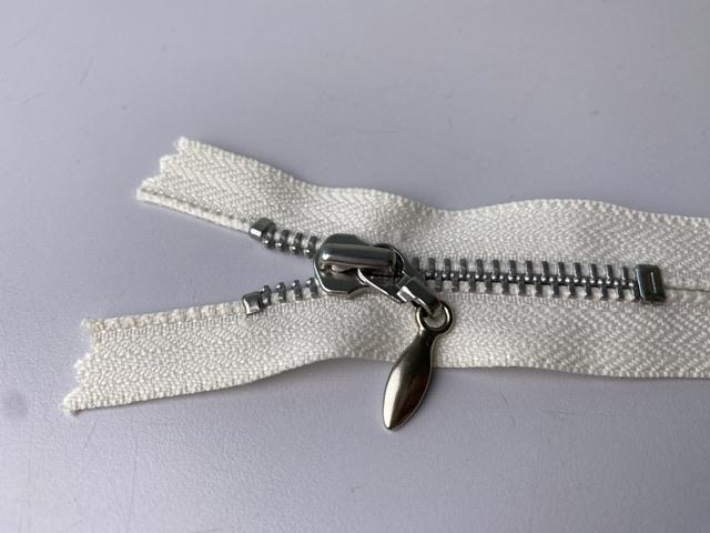 Lynlås - ikke delbar, offwhite med sølv metaltænder, 7 cm