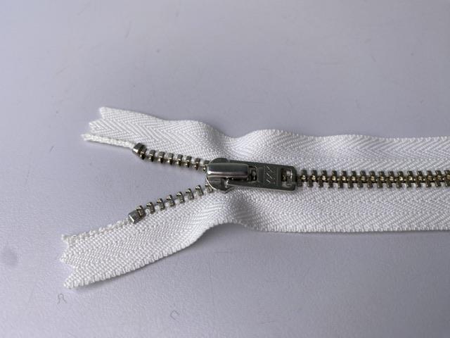 Lynlås - ikke delbar, offwhite med sølv metaltænder, 10 cm