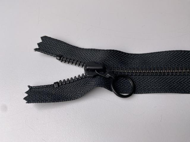 Lynlås - ikke delbar, sort med metaltænder, 12 cm