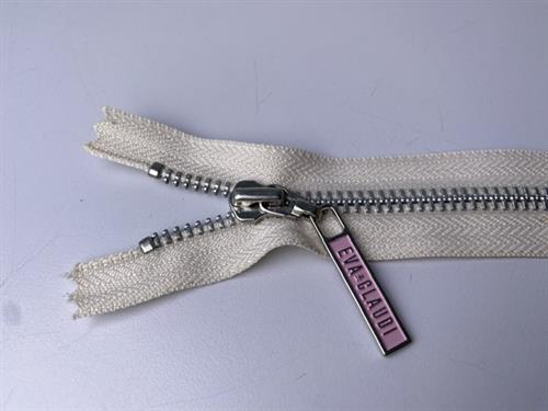 Lynlås - ikke delbar, offwhite med metaltænder, 13 cm